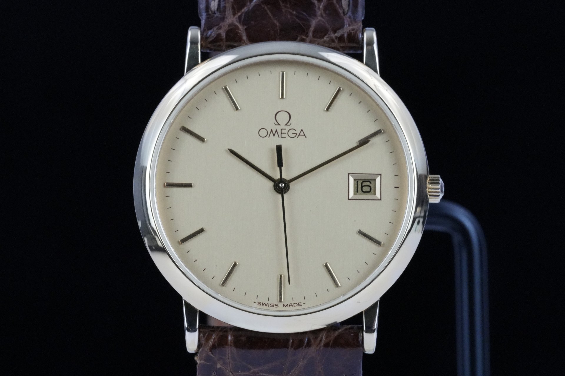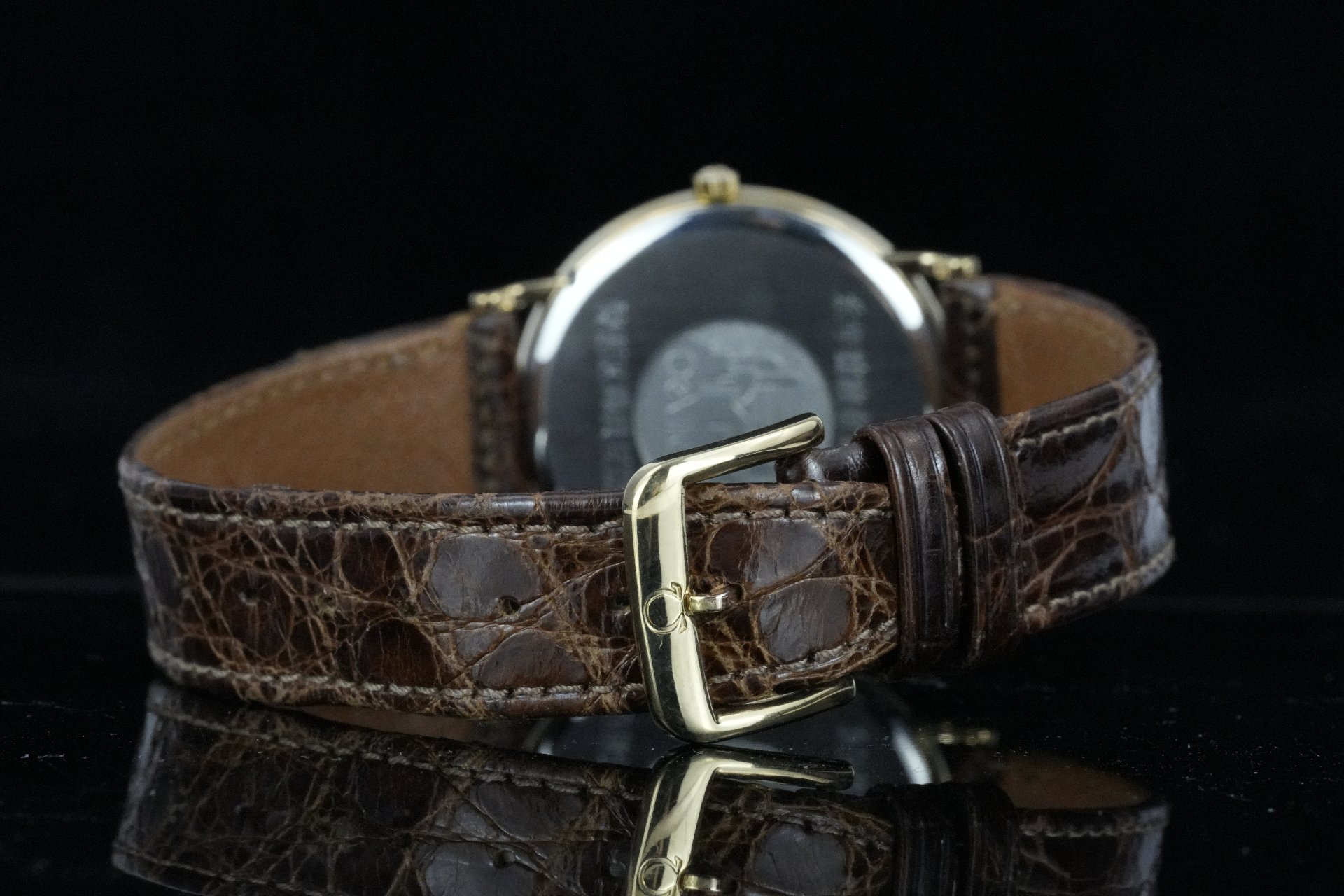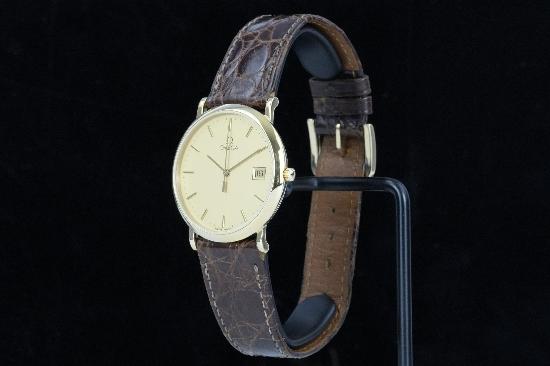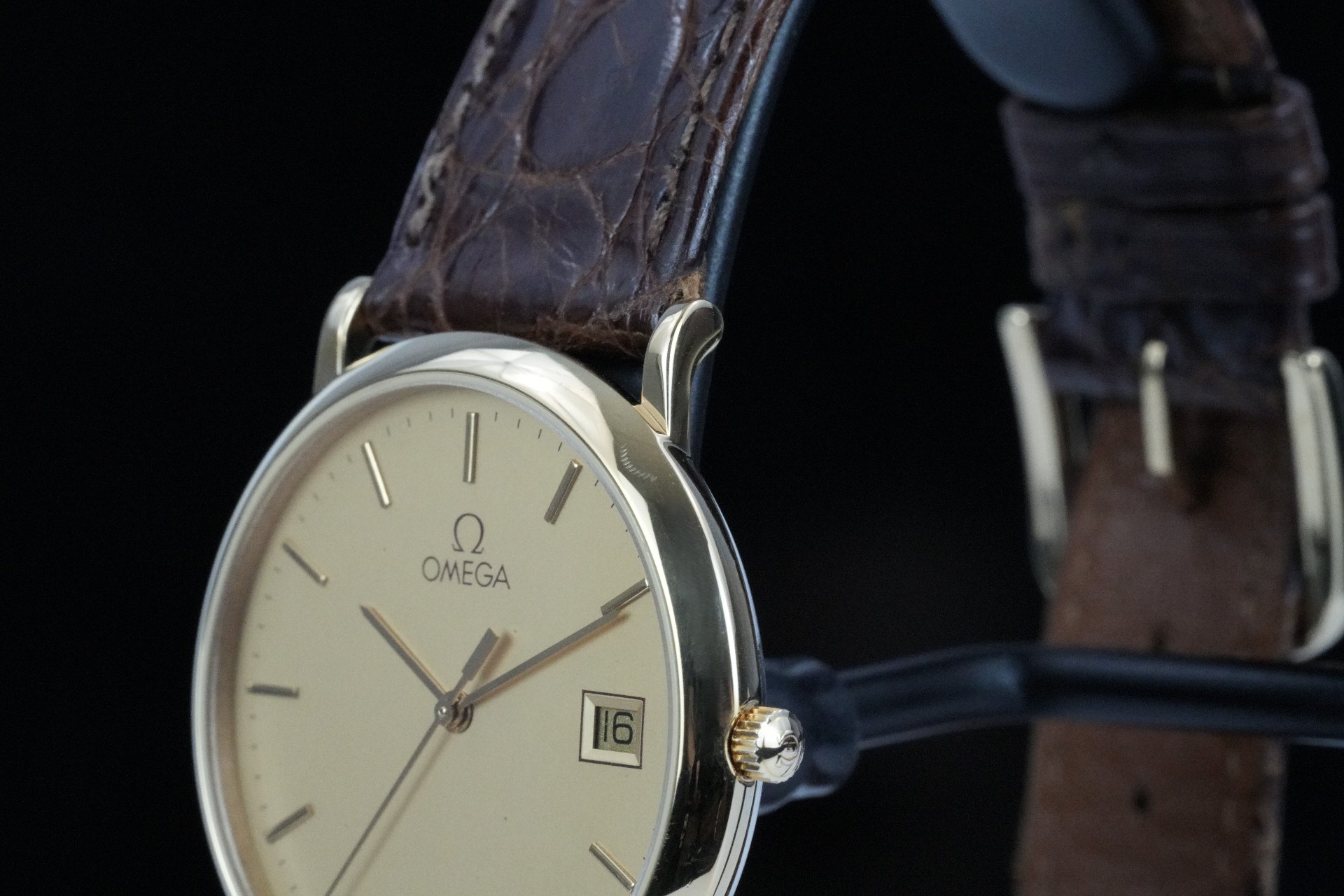 Découvrez l’Omega De Ville, référence commerciale 196.0312 et référence TOT-01789, un garde-temps unisexe de 1989. Son boîtier plaqué or de 32mm de diamètre et 5.2mm d’épaisseur abrite un mouvement Quartz précis. Le bracelet en cuir brun, d’origine, est complété par une boucle ardillon également originale. Cette montre, livrée seule, est en très bon état, prête à sublimer votre poignet. Révisée en janvier 2026, elle bénéficie d’une garantie de 12 mois.