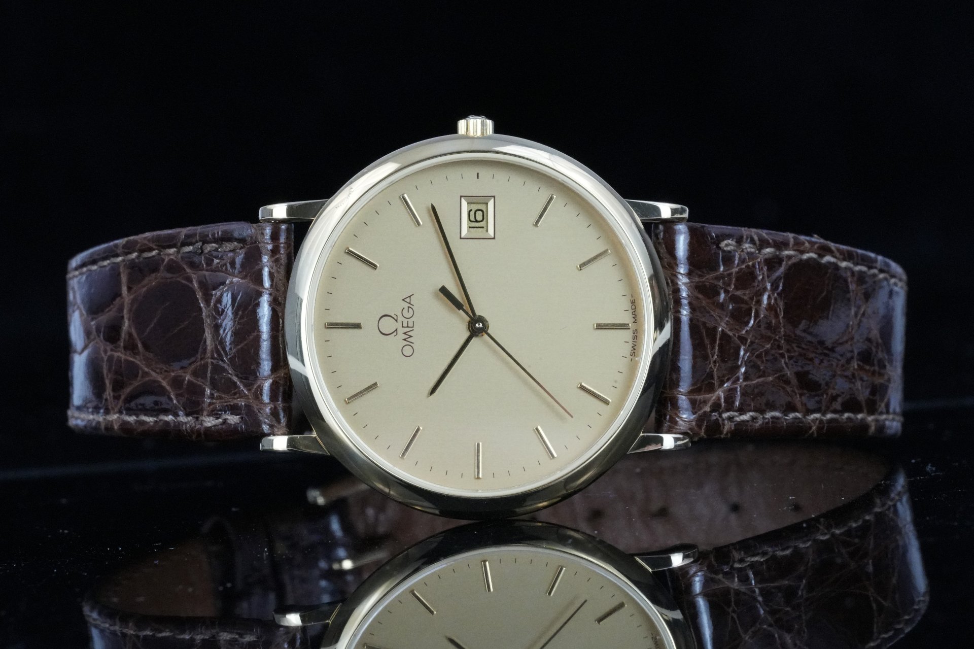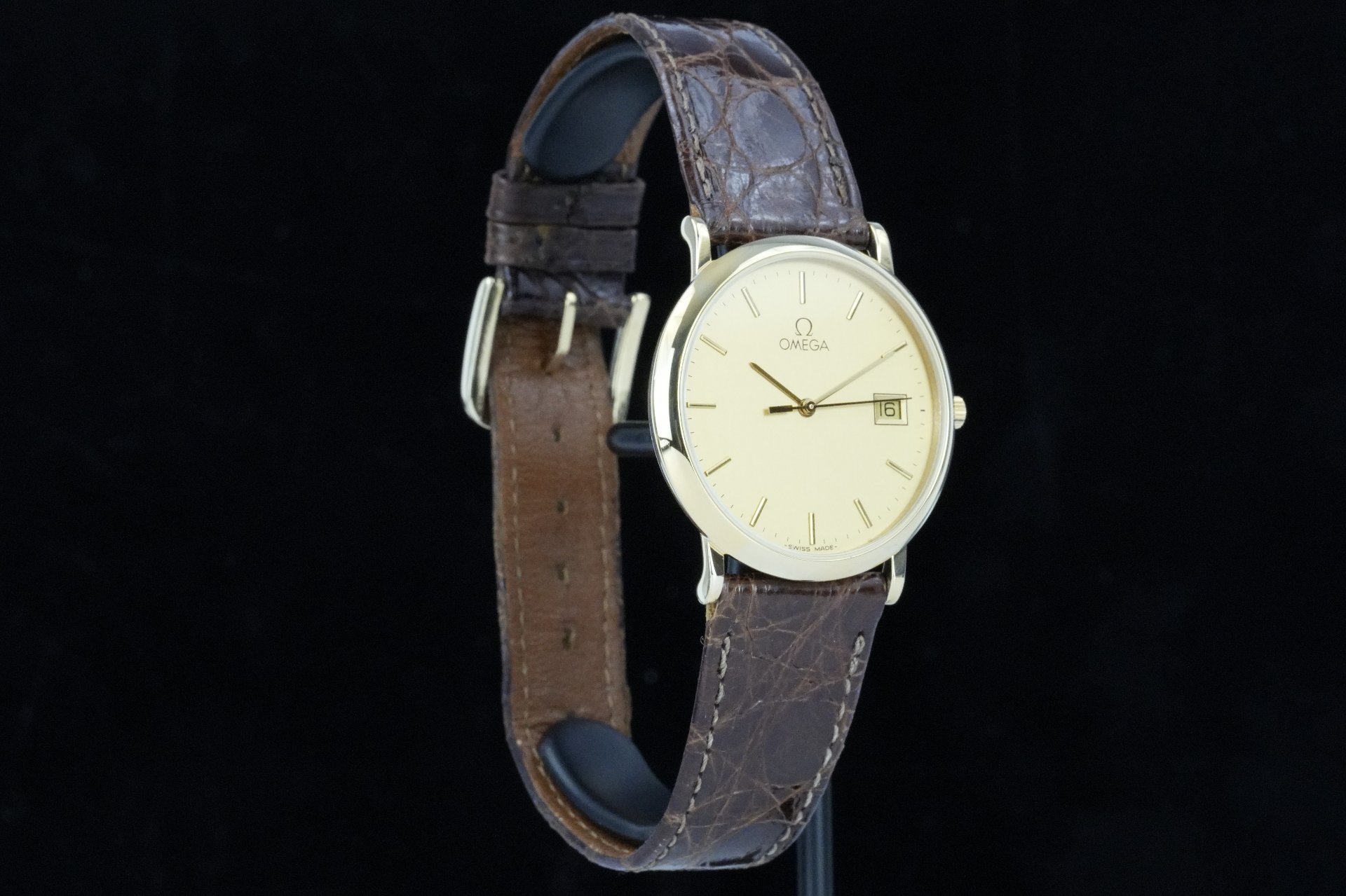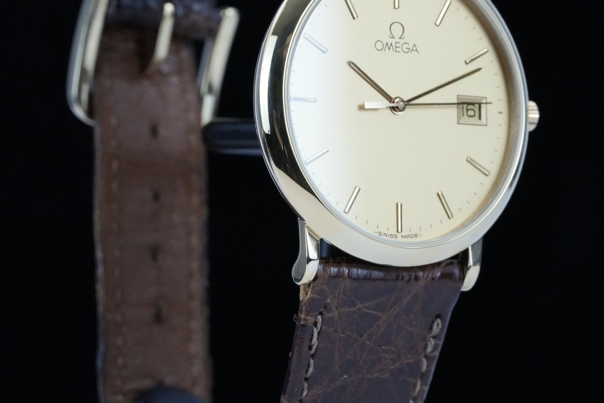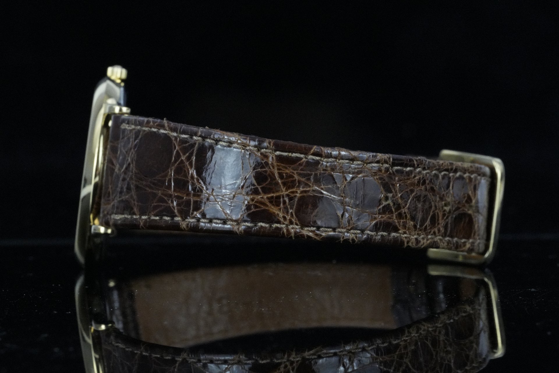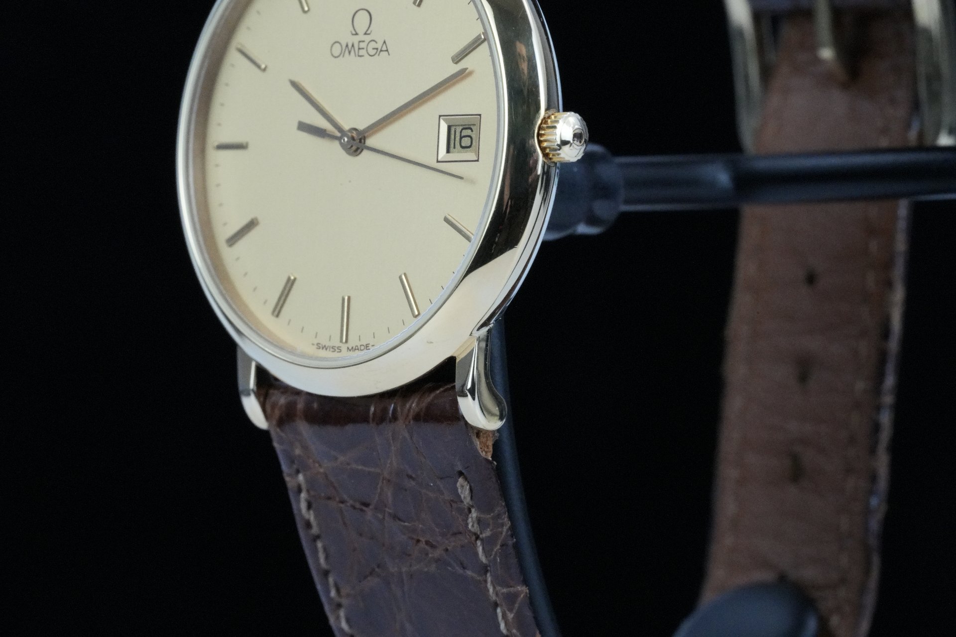 Découvrez l’Omega De Ville, référence commerciale 196.0312 et référence TOT-01789, un garde-temps unisexe de 1989. Son boîtier plaqué or de 32mm de diamètre et 5.2mm d’épaisseur abrite un mouvement Quartz précis. Le bracelet en cuir brun, d’origine, est complété par une boucle ardillon également originale. Cette montre, livrée seule, est en très bon état, prête à sublimer votre poignet. Révisée en janvier 2026, elle bénéficie d’une garantie de 12 mois.