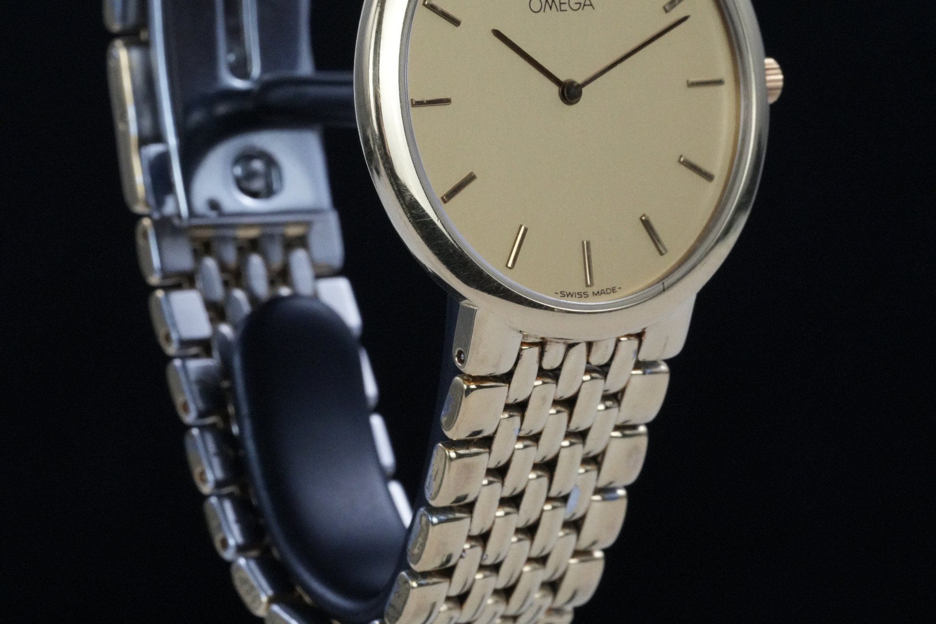 Découvrez l’élégance intemporelle avec cette Omega De Ville, référence commerciale 395 0875.2, une pièce vintage de 1992 en bon état. Son boîtier plaqué or de 32 mm de diamètre et d’une finesse remarquable de 4 mm abrite un mouvement Quartz précis, offrant une esthétique raffinée. Le bracelet original en acier couleur or, mesurant 17.5 cm, s’harmonise parfaitement avec le boîtier. Il est sécurisé par une boucle déployante originale, ajoutant à son authenticité. Cette montre unisexe est livrée seule. Elle bénéficie d’une garantie de 12 mois. Référence TOT-01840.