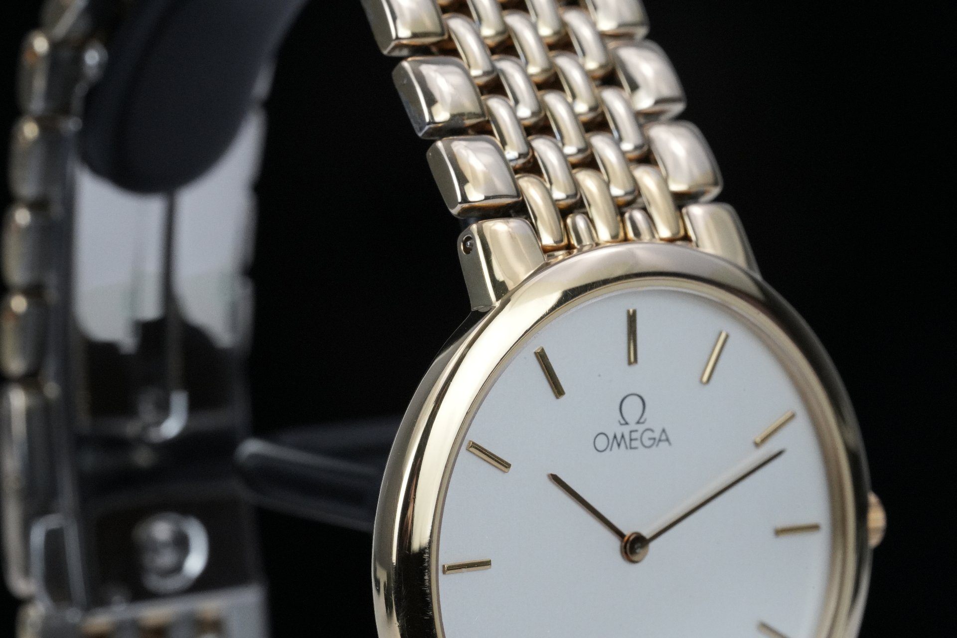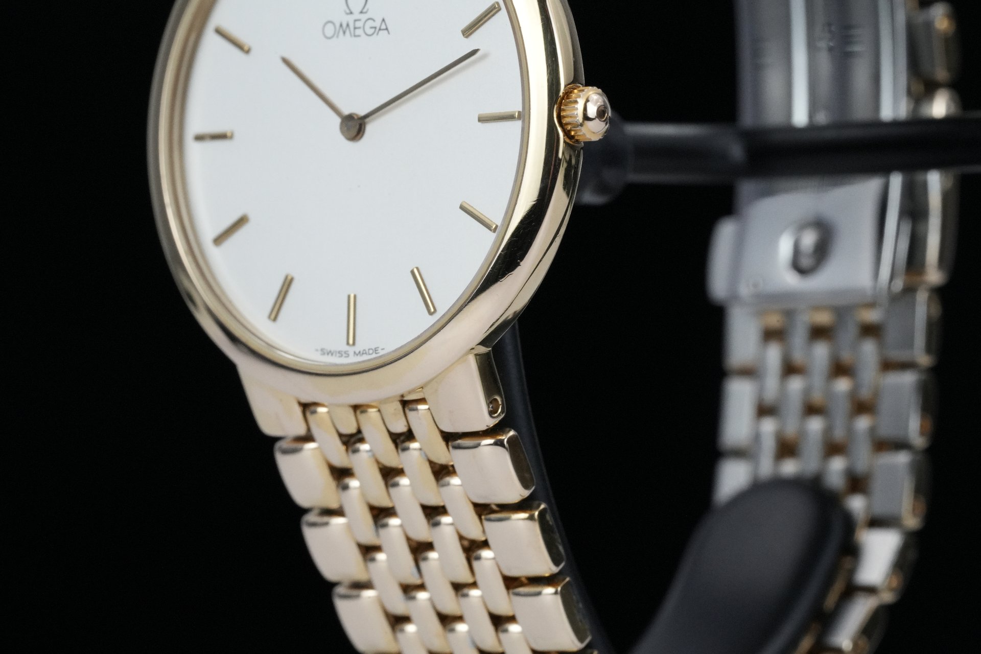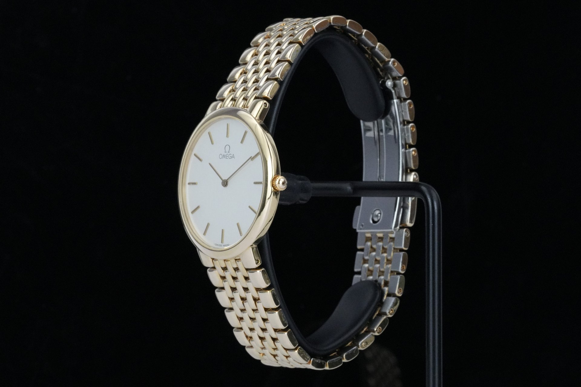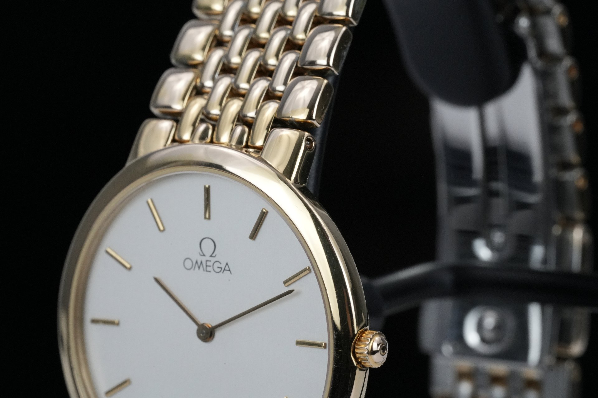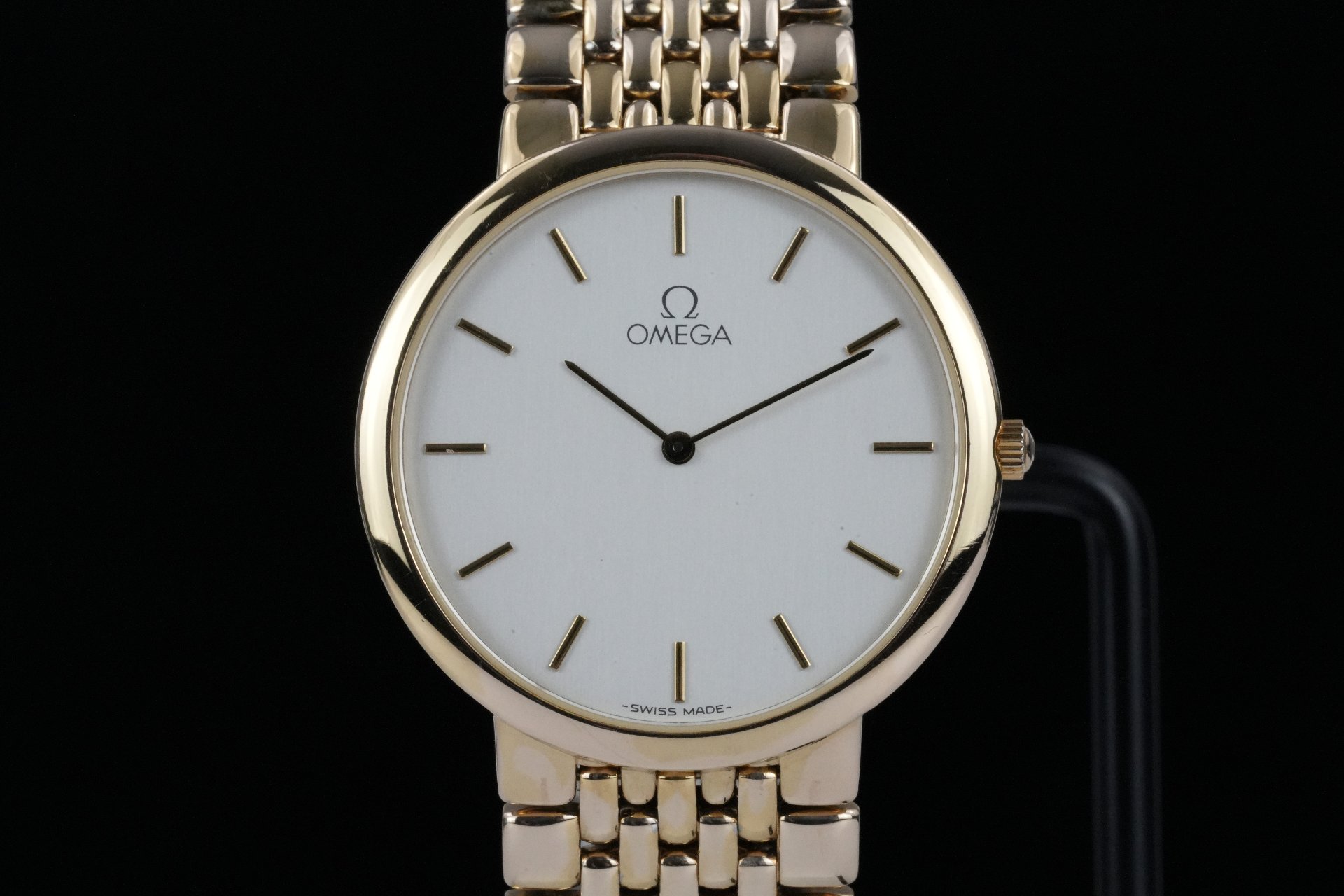 Découvrez l’élégance intemporelle avec cette montre Omega De Ville, référence commerciale 395.0875. Cette pièce unisexe, présentée seule, incarne la discrétion et le raffinement. Animée par un mouvement à Quartz précis, elle loge dans un boîtier finement plaqué or de 32 mm de diamètre pour une épaisseur ultra-mince de 4.2 mm. Son bracelet en acier couleur or, de 18.5 cm, est d’origine, tout comme sa boucle déployante, offrant un confort et une esthétique parfaits. Datant de 1995, cette Omega en très bon état fut révisée en janvier 2026 et bénéficie d’une garantie de 12 mois. Référence TOT-01790.