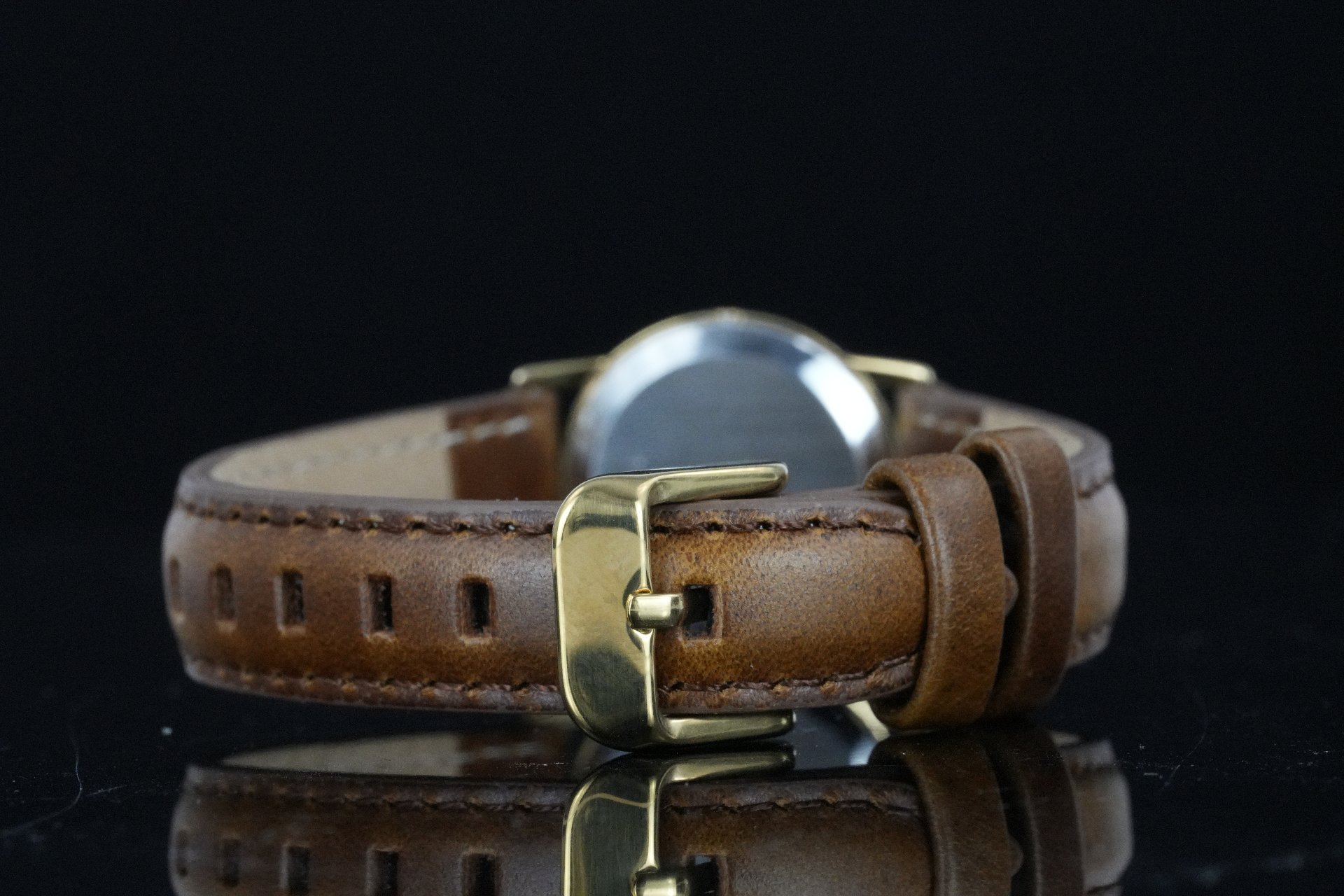 Découvrez l’élégance intemporelle de cette montre Omega De Ville Quartz, Référence commerciale 591.0150. Ce modèle pour femme, datant de 1981, incarne la sophistication discrète qui caractérise la collection De Ville. Son boîtier plaqué or de 22mm de diamètre et 5.2mm d’épaisseur abrite un mouvement à Quartz, garantissant une précision fiable. Le bracelet en cuir brun non-original, agrémenté d’une boucle ardillon non-originale, complète harmonieusement l’ensemble. La montre est livrée seule et bénéficie d’une garantie de 12 mois. Son bon état général témoigne de son histoire préservée.