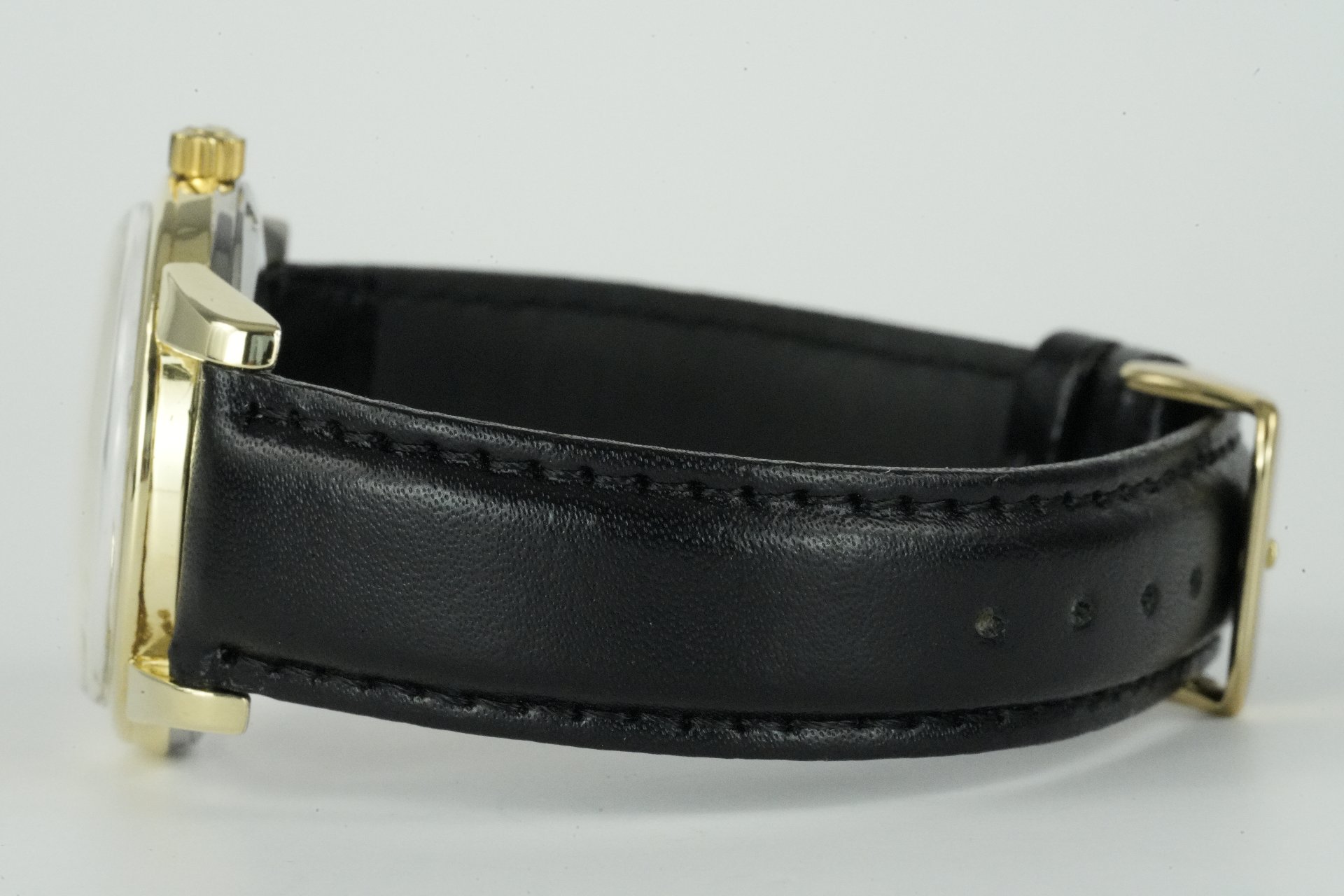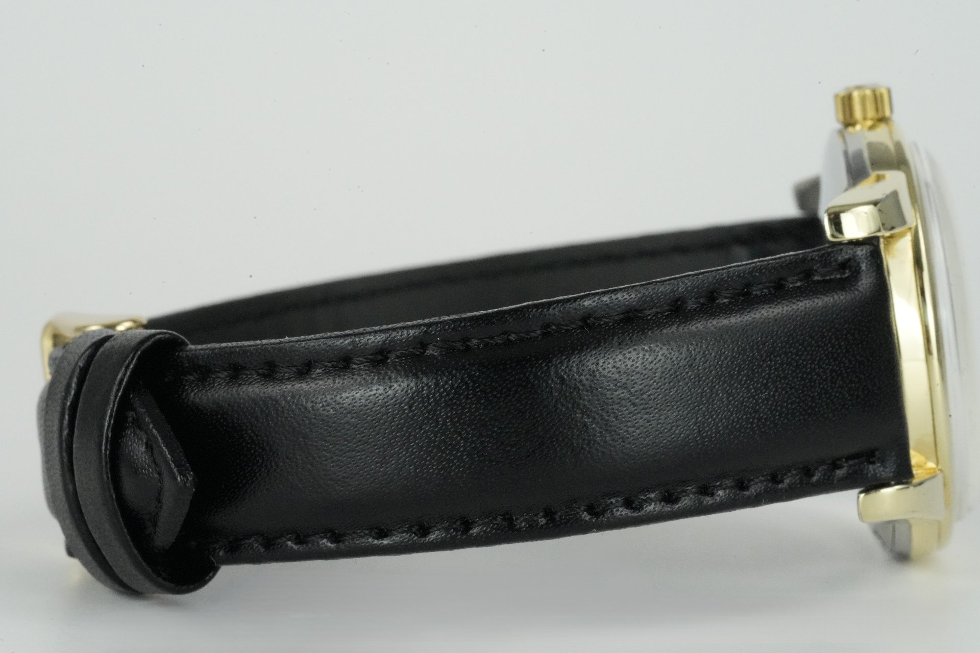 Sublimez votre poignet avec cette montre Omega Seamaster Automatic, une pièce unisexe de l’année 1962, référence commerciale 14761-62 SC. Son boîtier plaqué or de 34mm de diamètre et 11mm d’épaisseur abrite un mouvement automatique d’une fiabilité éprouvée. Le bracelet en cuir noir non-original, agrémenté d’une boucle ardillon non-originale, offre un contraste élégant. Cette montre, en très bon état, est livrée seule. Sa dernière révision date de décembre 2025 et elle bénéficie d’une garantie de 12 mois.