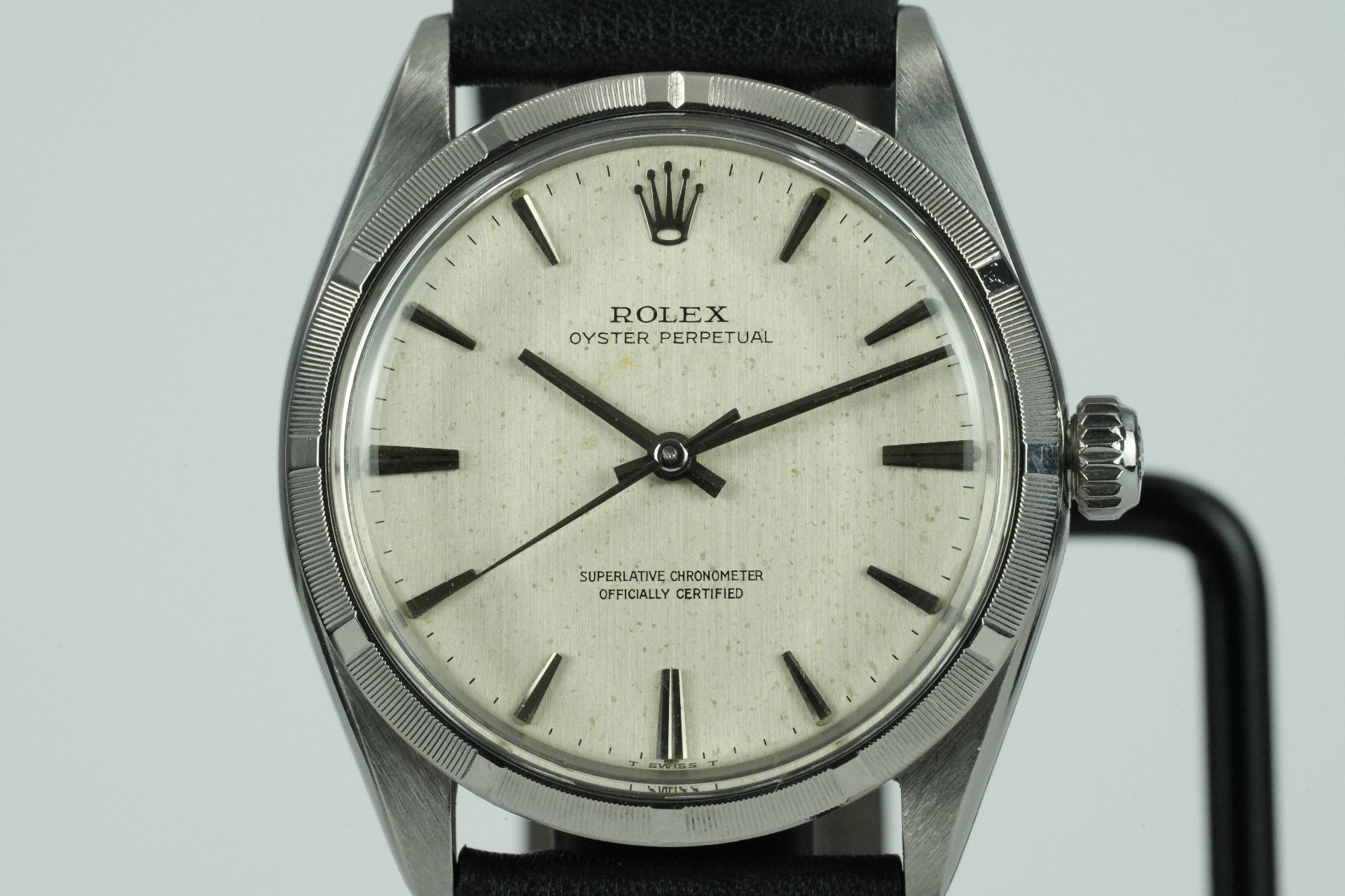 Découvrez l’élégance intemporelle de cette Rolex Oyster Perpetual, Référence commerciale 1003 (Référence TOT : TOT-01806), une pièce unisexe datant de 1966. Son boîtier en acier de 34 mm de diamètre et 11 mm d’épaisseur abrite un mouvement à remontage automatique Rolex 1570, gage de précision et de fiabilité.