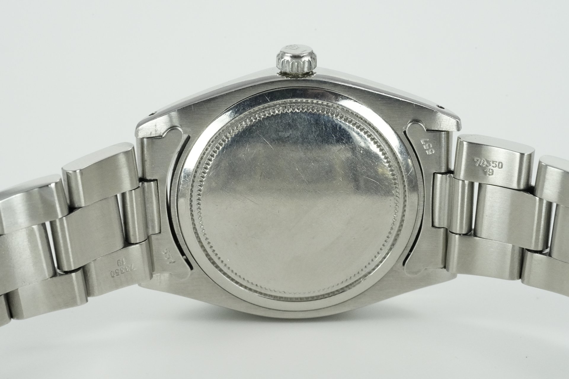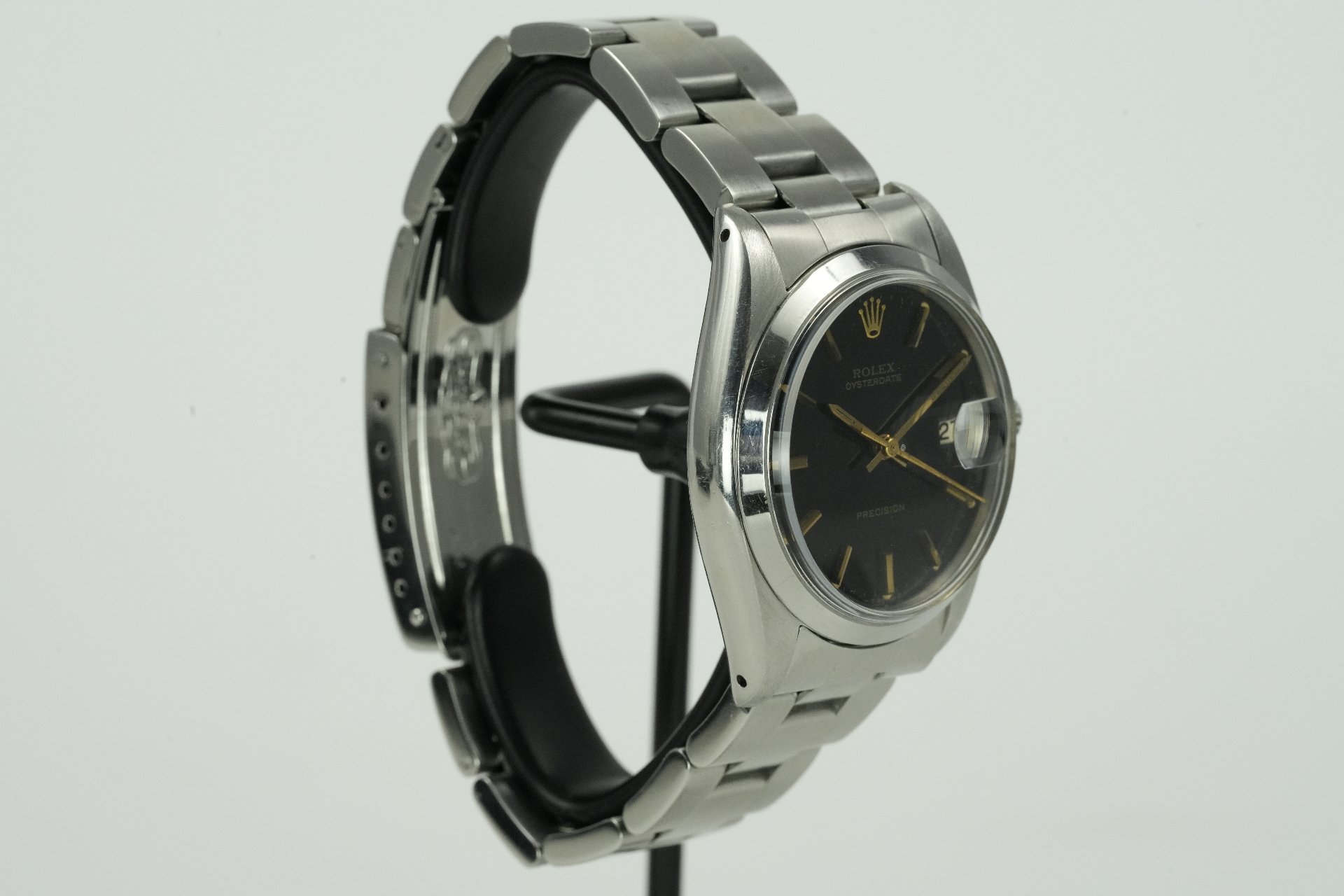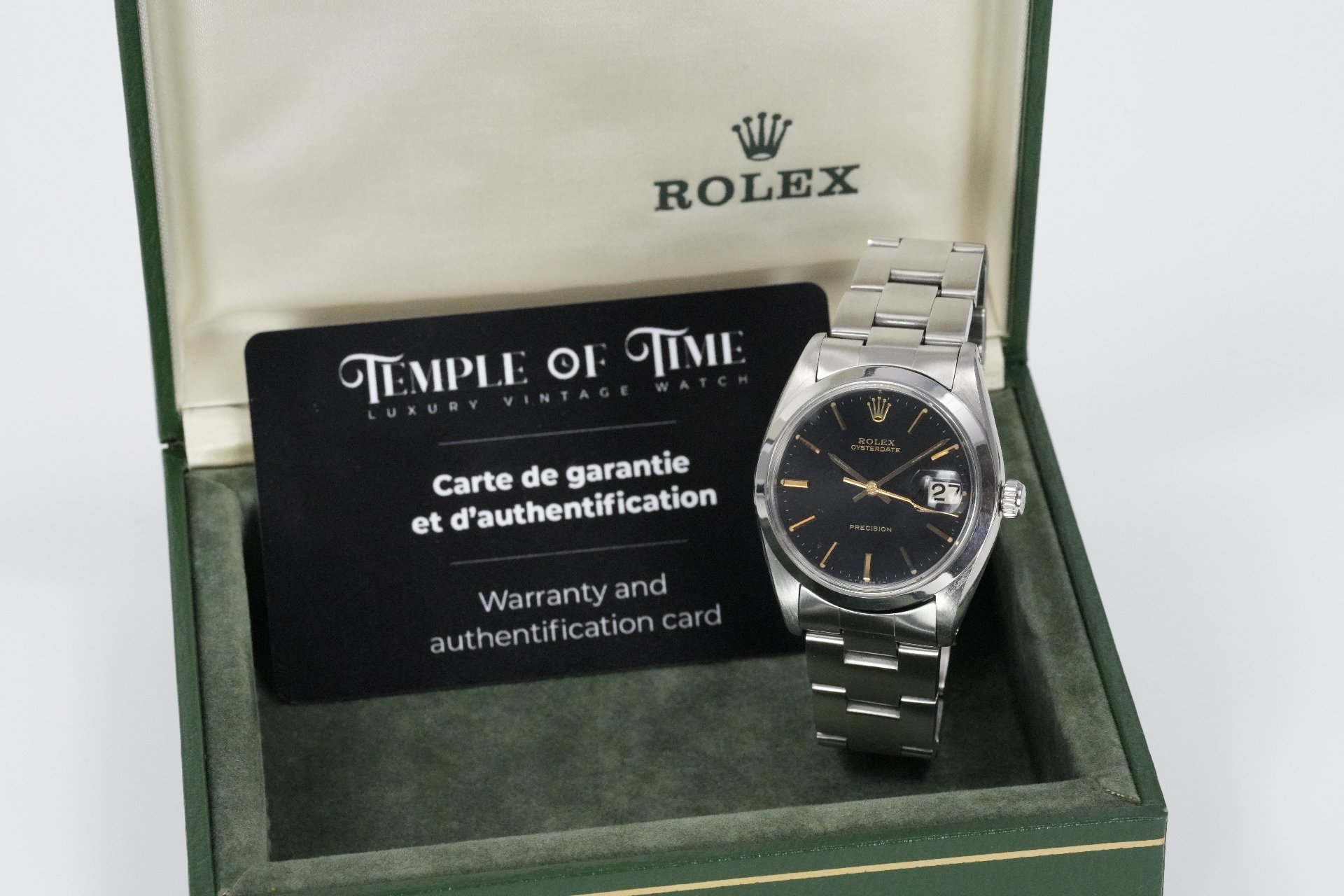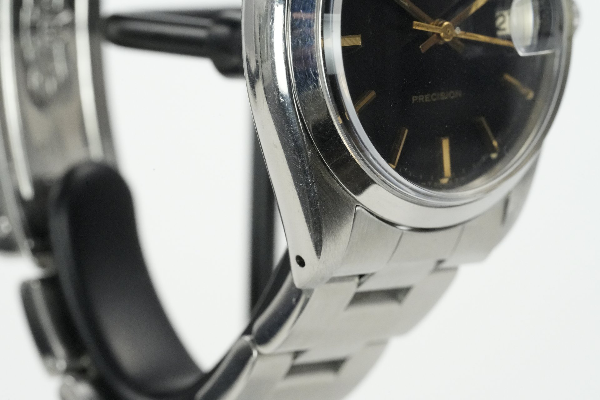 Découvrez une icône intemporelle de l’horlogerie avec cette Rolex OysterDate Precision, référence commerciale 6694, de l’année 1959. Ce modèle unisexe, d’une élégance rare, est animé par un mouvement à remontage manuel, témoignage du savoir-faire traditionnel de la manufacture. Le boîtier en acier de 34mm de diamètre et 11.4mm d’épaisseur abrite un cadran noir patiné. Son bracelet Oyster en acier de service, s’achève par une boucle à plis également d’origine. Cette pièce est livrée avec son coffret, soulignant son authenticité. Avec une étanchéité de 10 ATM, cette OysterDate Precision est une montre fiable. Elle est accompagnée d’une garantie de 12 mois.