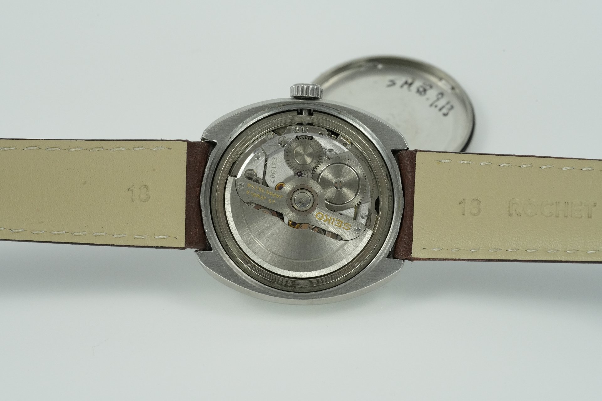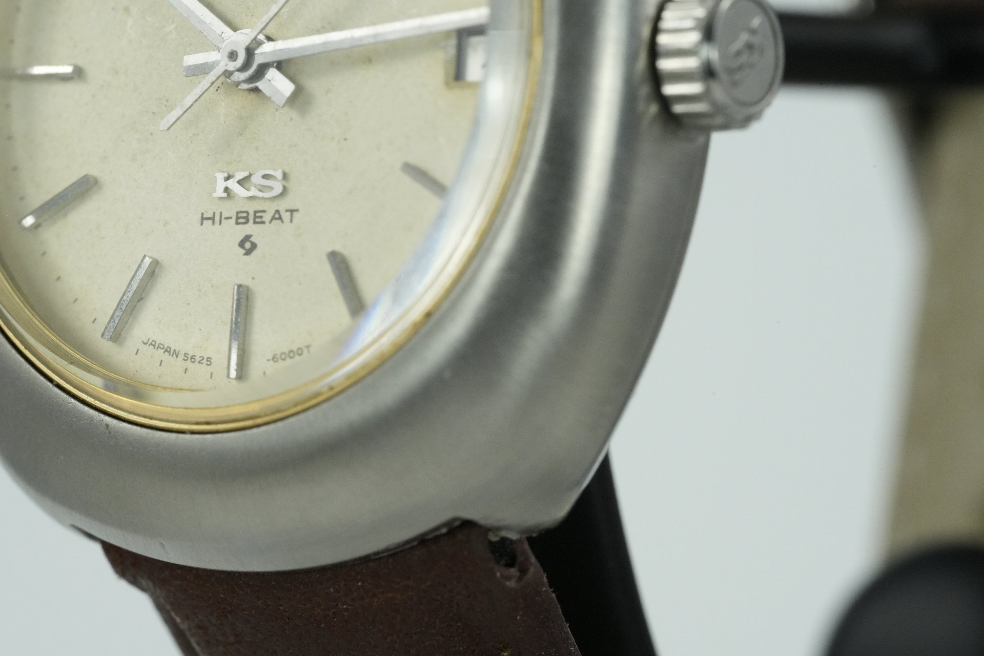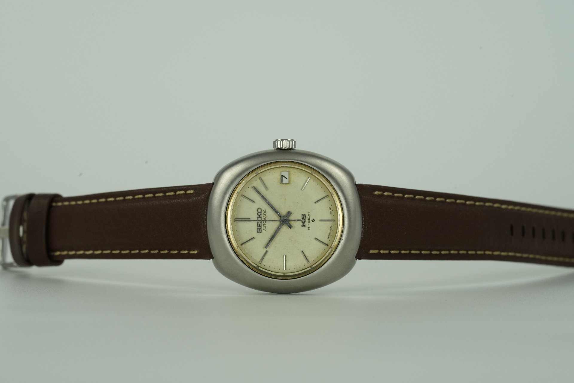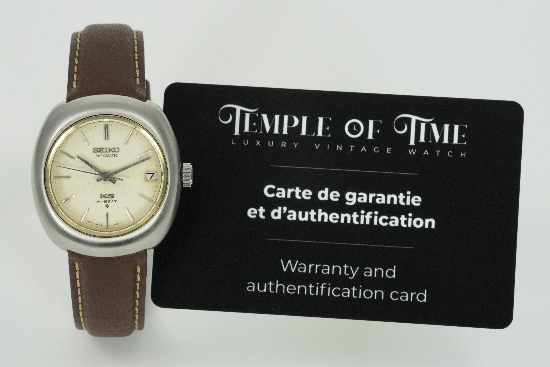 Découvrez l’élégance intemporelle de cette Seiko Automatic « KS », Référence 5625-6000. Ce modèle homme, datant de 1970, est reconnu pour son mouvement à remontage automatique, gage de précision et de fiabilité horlogère. Son boîtier en acier, de 34.4mm de diamètre et 10.8mm d’épaisseur, offre des dimensions classiques et raffinées. Le cadran est sublimé par un bracelet en cuir brun non-original, complété par une boucle ardillon également non-originale, contribuant à son excellent état général. Révisée en novembre 2025, cette pièce est assortie d’une garantie de 12 mois.
