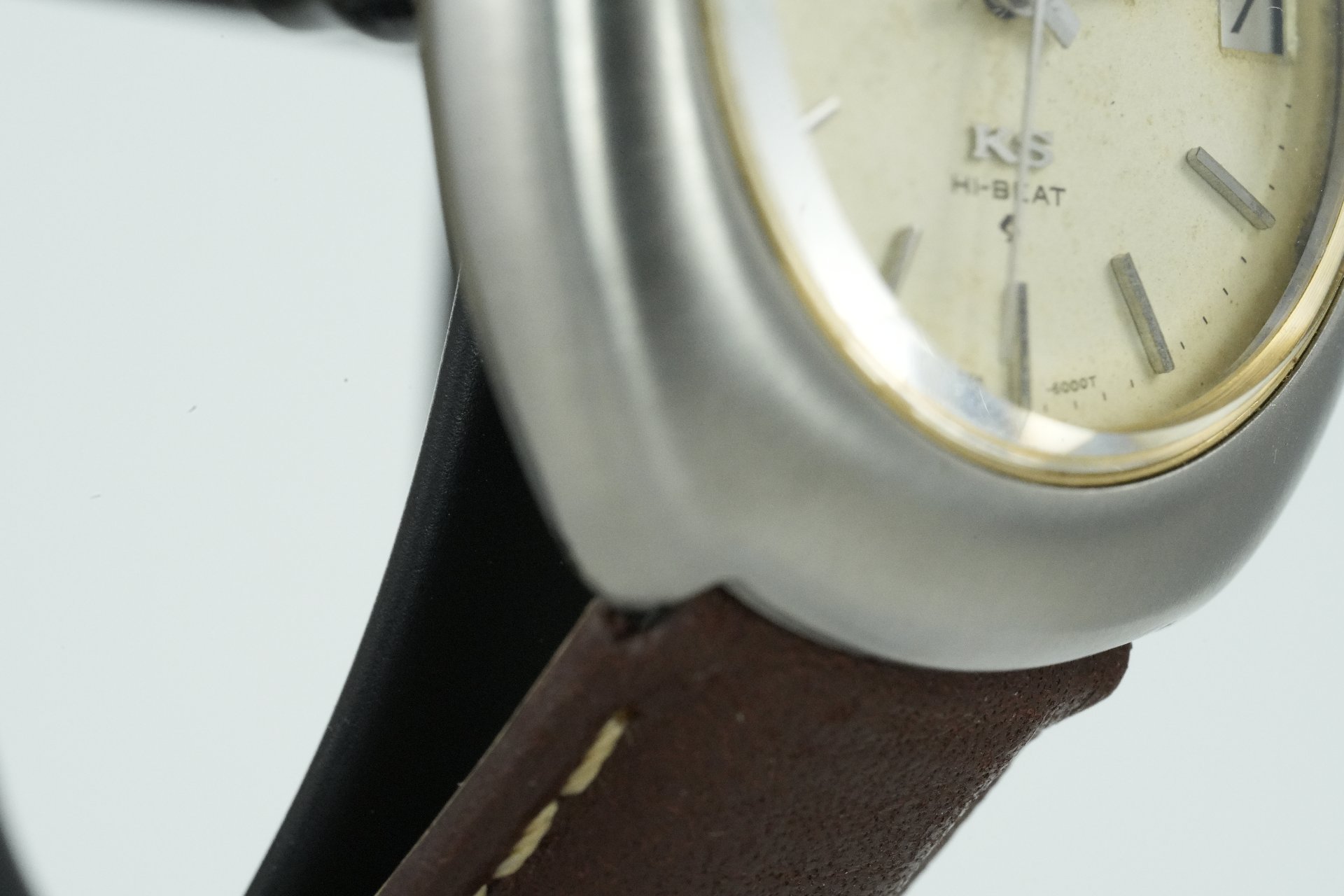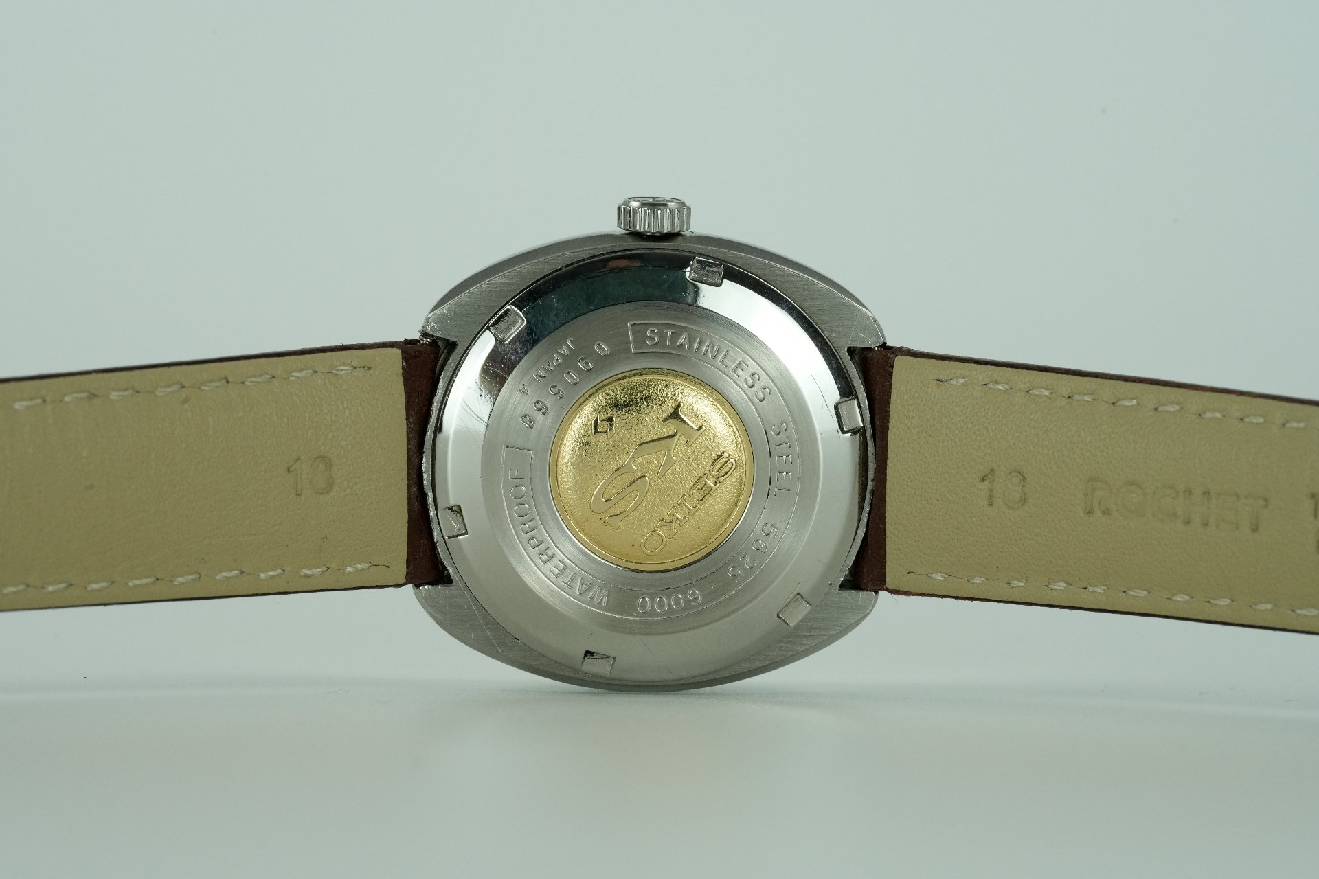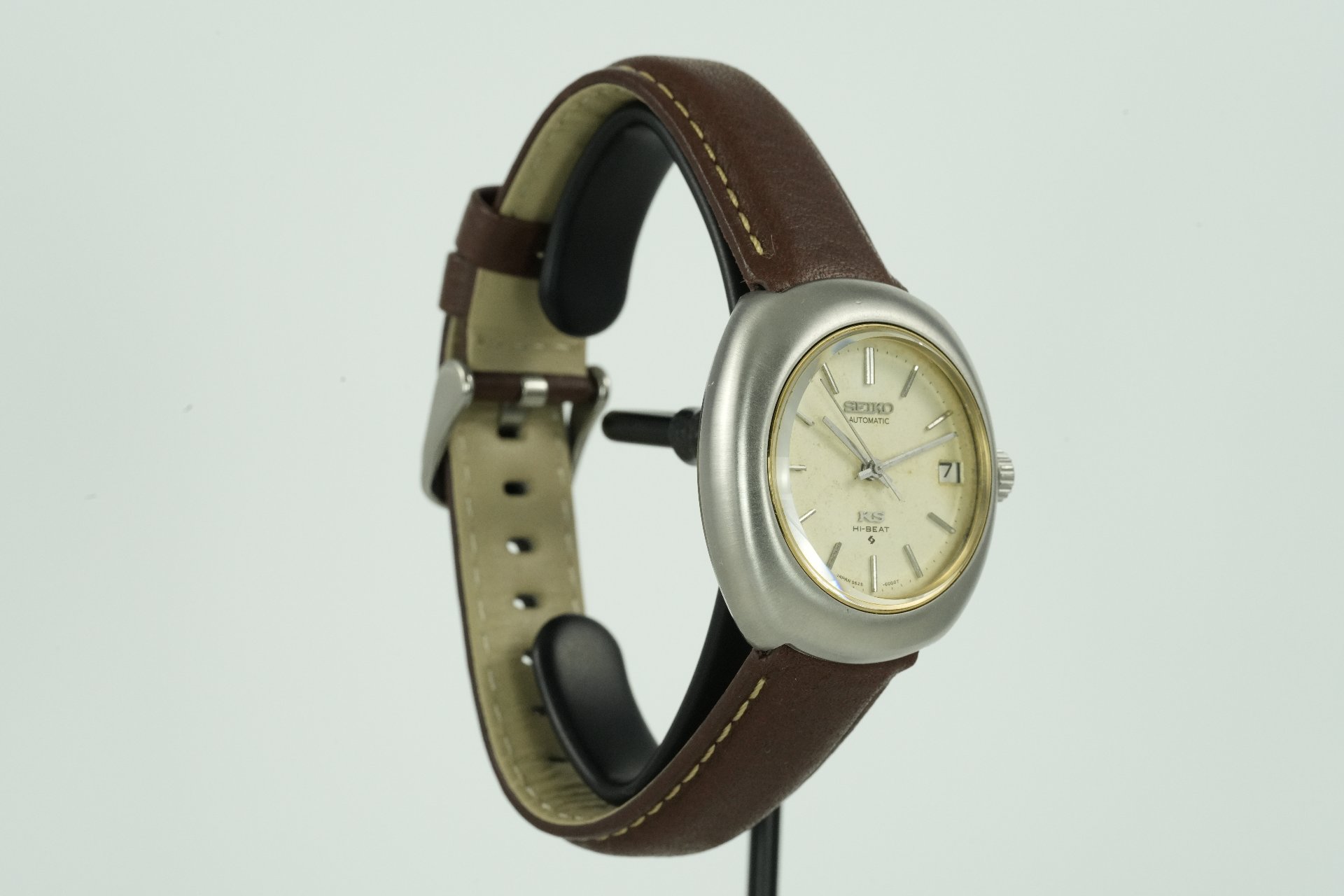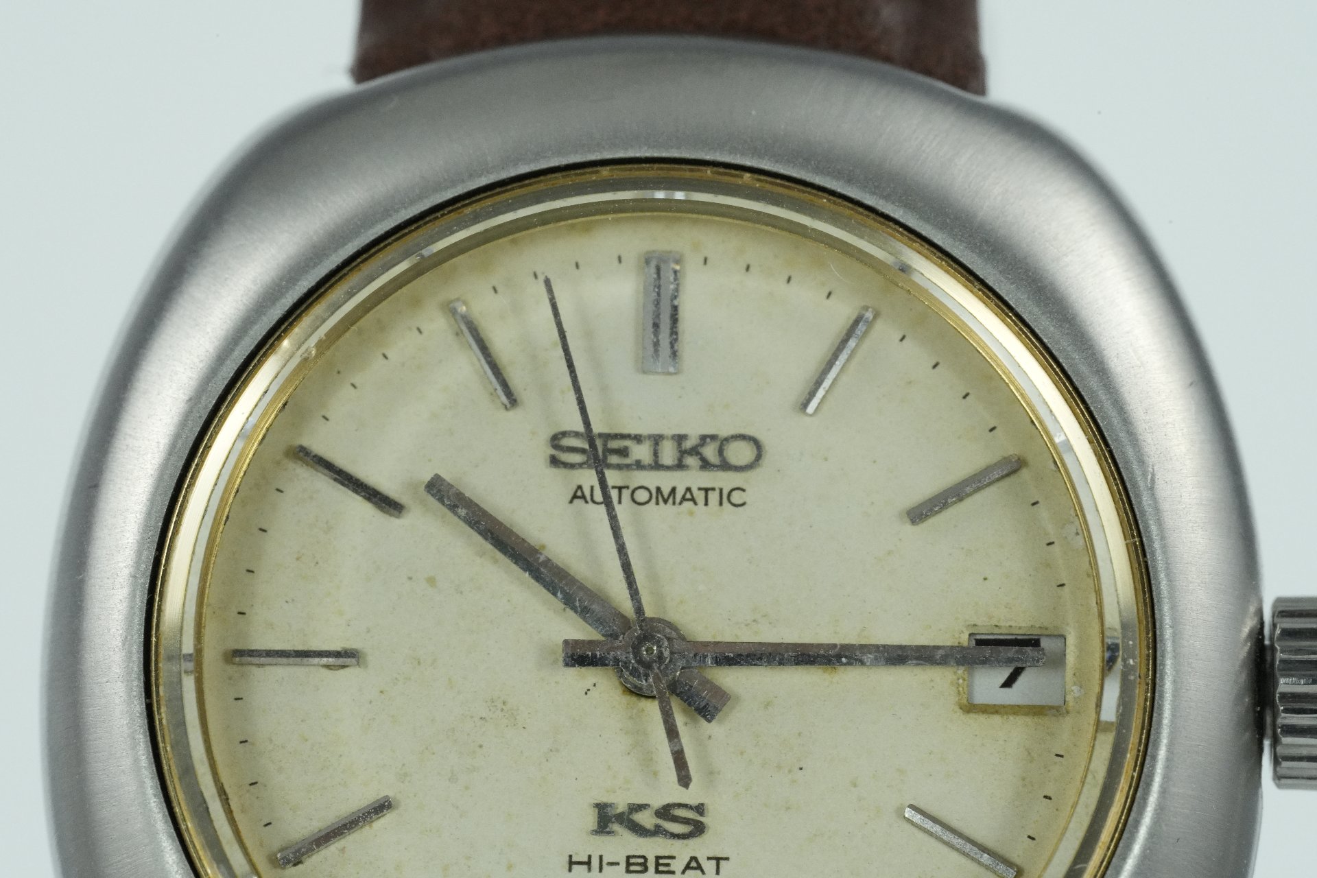 Découvrez l’élégance intemporelle de cette Seiko Automatic « KS », Référence 5625-6000. Ce modèle homme, datant de 1970, est reconnu pour son mouvement à remontage automatique, gage de précision et de fiabilité horlogère. Son boîtier en acier, de 34.4mm de diamètre et 10.8mm d’épaisseur, offre des dimensions classiques et raffinées. Le cadran est sublimé par un bracelet en cuir brun non-original, complété par une boucle ardillon également non-originale, contribuant à son excellent état général. Révisée en novembre 2025, cette pièce est assortie d’une garantie de 12 mois.