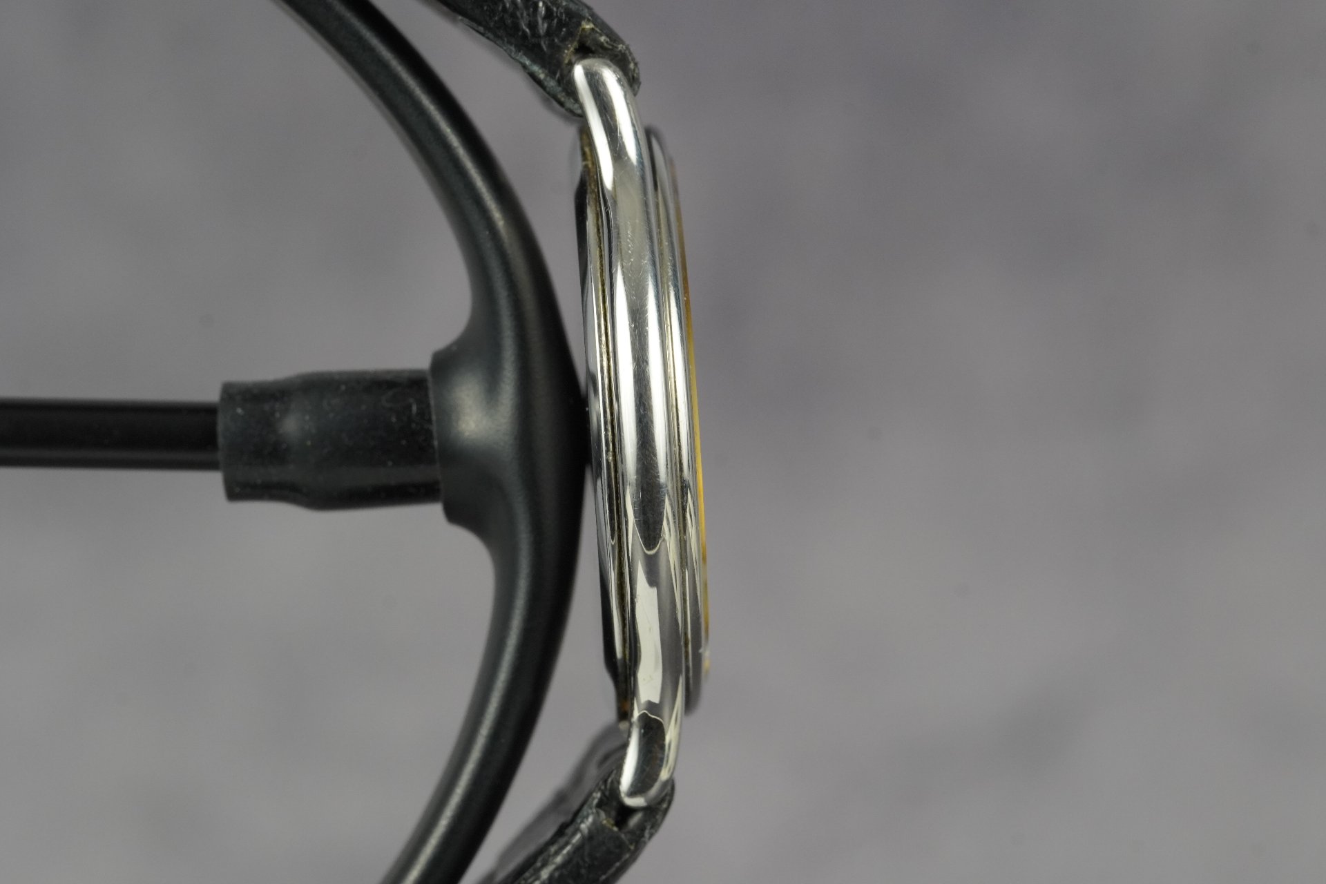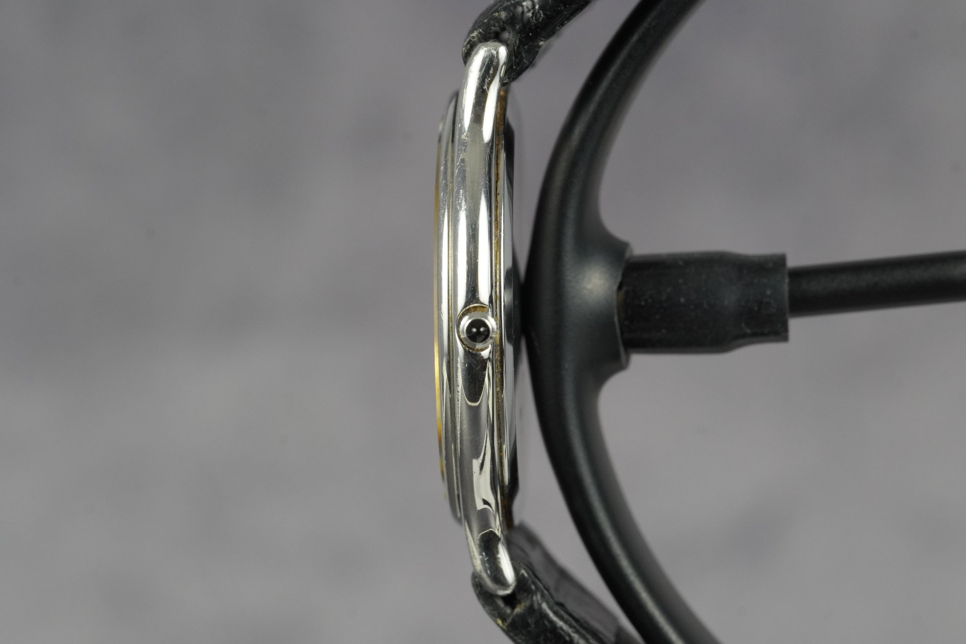 Son boîtier en acier, habilement poli, dessine des lignes épurées et intemporelles, offrant une présence discrète mais affirmée au poignet. Le cadran, d’une sobriété étudiée, est ponctué d’index délicats et d’aiguilles fines, garantissant une lisibilité parfaite tout en soulignant la qualité des finitions.