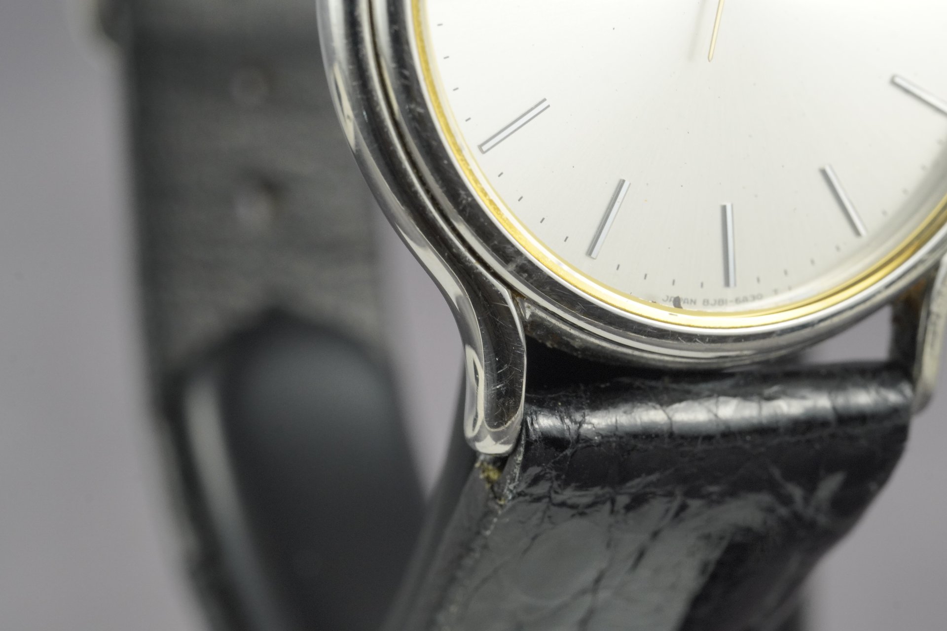 Cette montre Seiko Credor 8J81-6A30 incarne la quintessence du savoir-faire horloger japonais, alliant une précision technique redoutable à une esthétique raffinée. Témoin d’une époque où l’horlogerie à quartz atteignait des sommets de sophistication, ce modèle représente l’engagement indéfectible de Credor envers l’excellence.