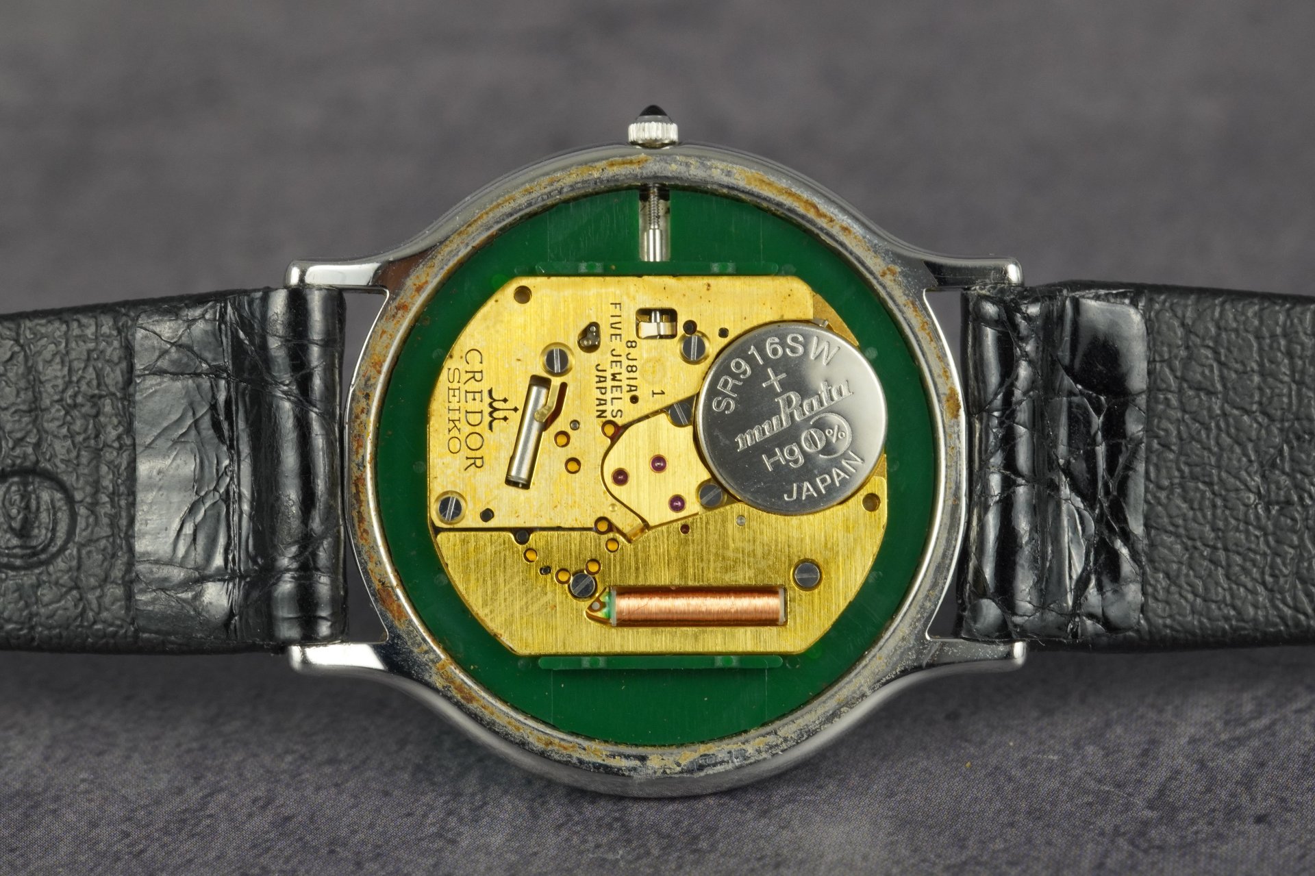 Au cœur de cette pièce bat le calibre à quartz 8J81, un mouvement haute performance réputé pour sa précision exceptionnelle et sa fiabilité hors pair. Ce calibre témoigne de l’ingéniosité de Credor à fusionner la technologie de pointe avec les principes traditionnels de l’horlogerie de luxe.