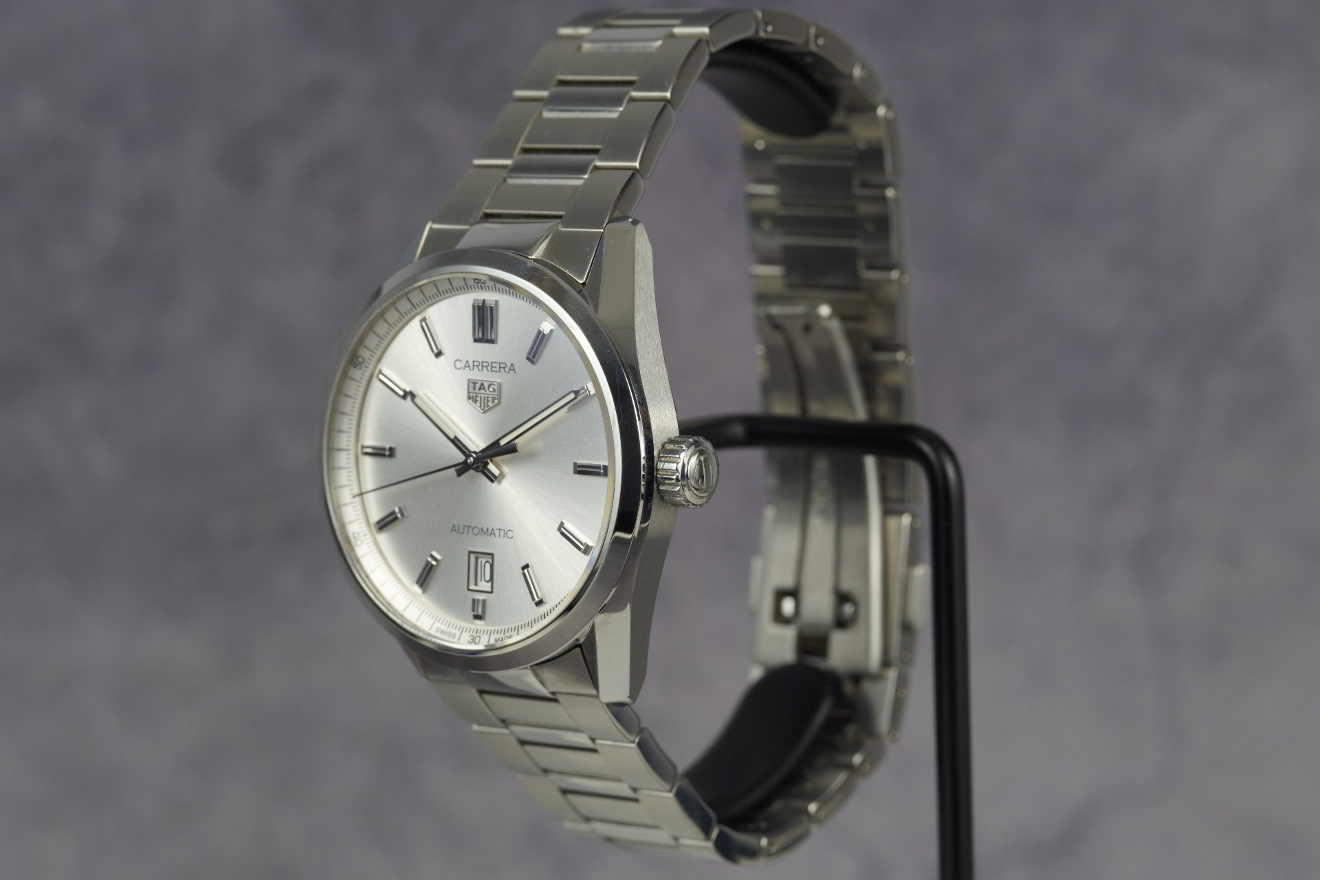 Découvrez l’élégance intemporelle et la performance horlogère avec cette TAG Heuer Carrera Calibre 5. Fabriquée en 2024, cette pièce incarne l’héritage sportif et le savoir-faire avant-gardiste de la Maison. Son boîtier et son bracelet en acier poli reflètent la lumière avec une sophistication discrète, tandis que la lunette fixe renforce son allure racée.