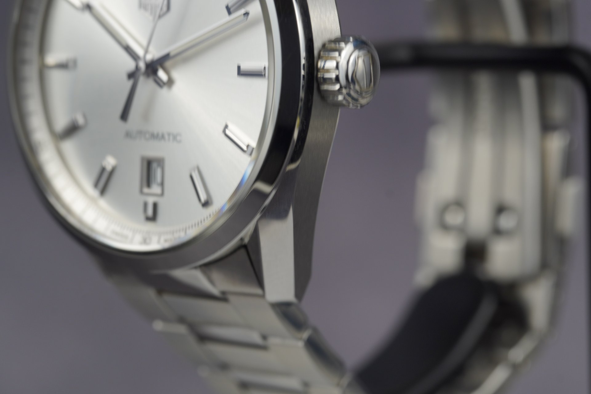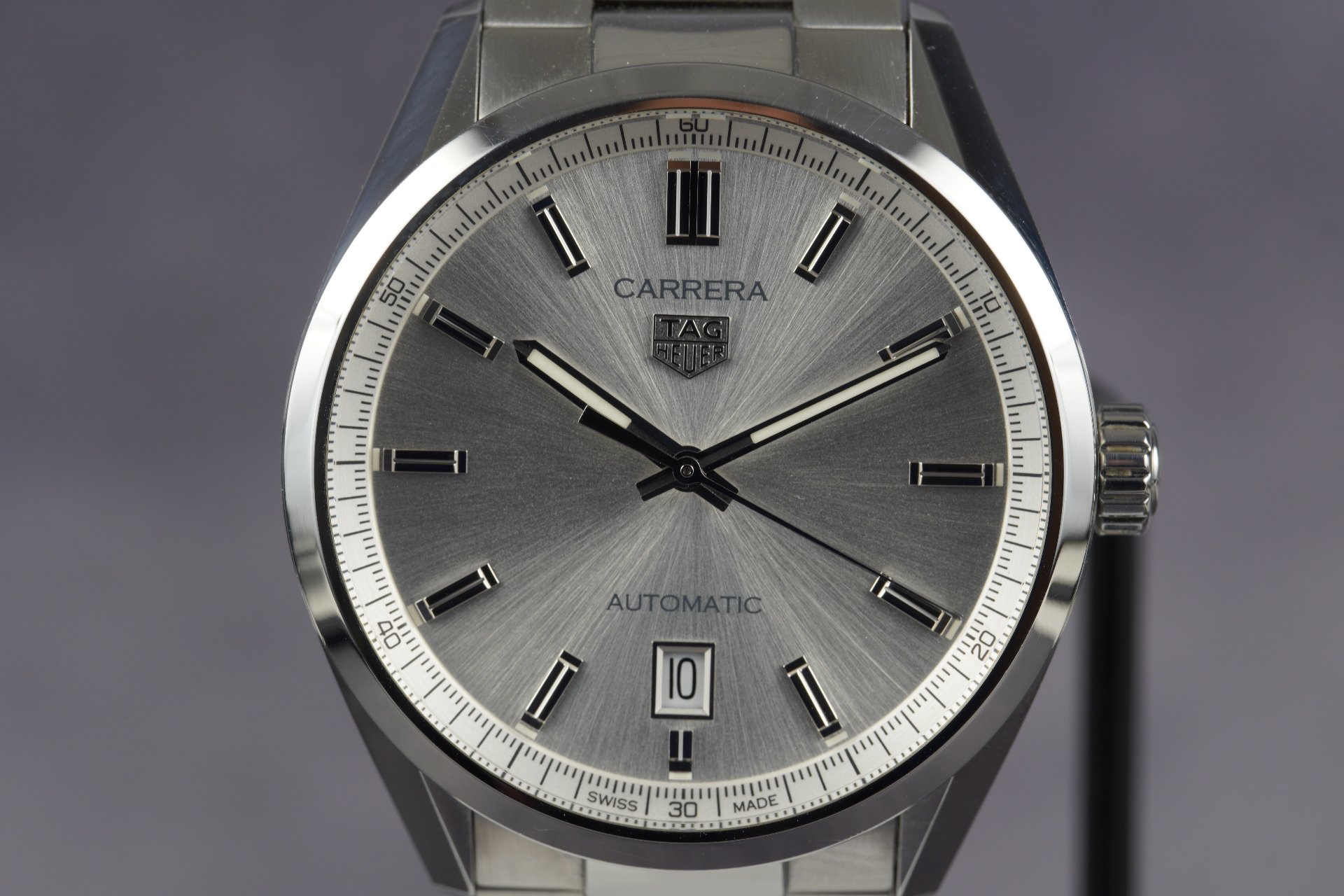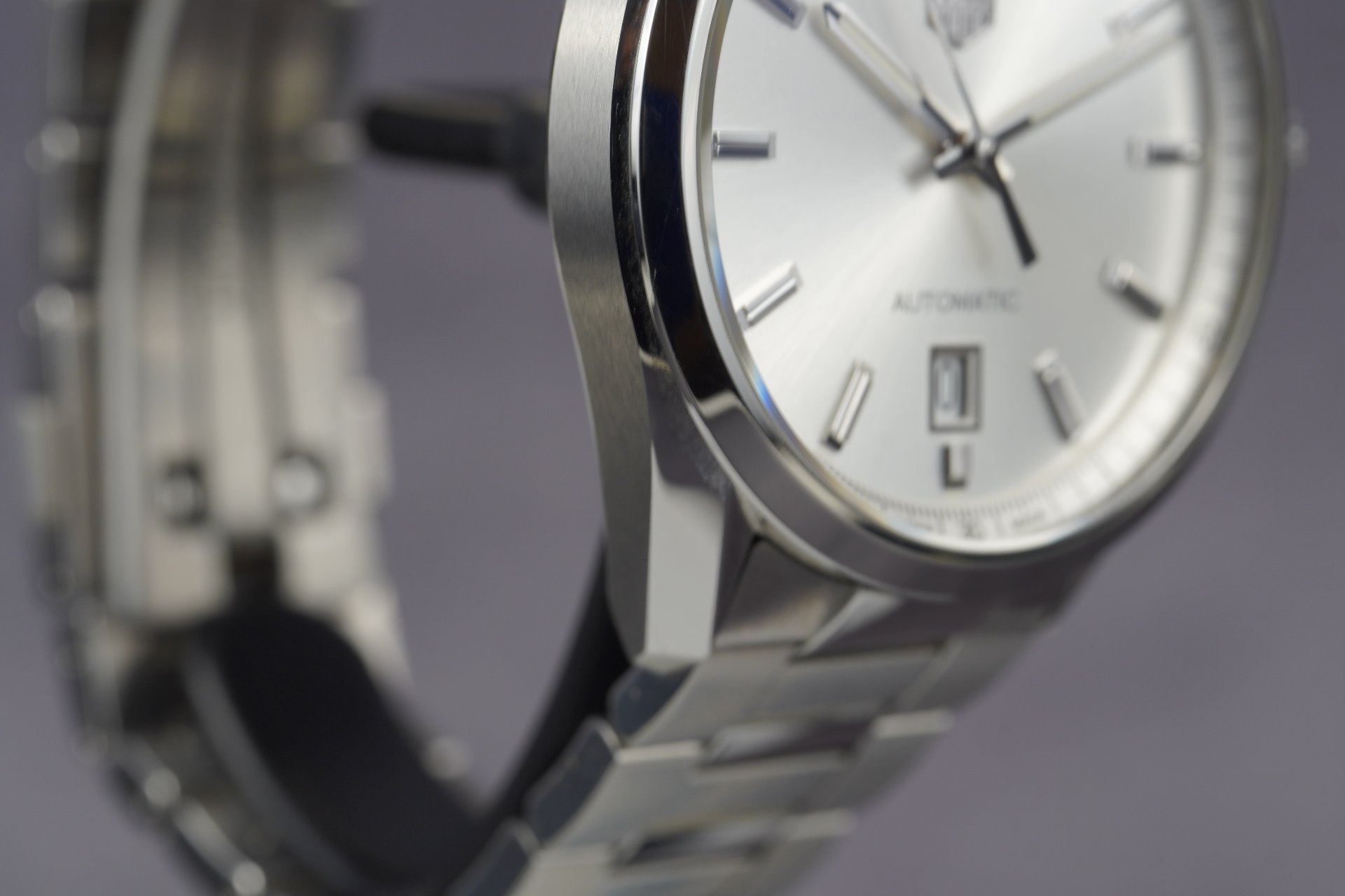 Au cœur de cette montre bat le mouvement automatique TAG Heuer Calibre 5, un gage de précision et de fiabilité, visible à travers le fond saphir. Le cadran argenté soleillé, rehaussé d’index appliqués et d’aiguilles facettées, offre une lisibilité parfaite et une esthétique raffinée. Son diamètre de 39 mm assure une présence élégante et un confort optimal au poignet.